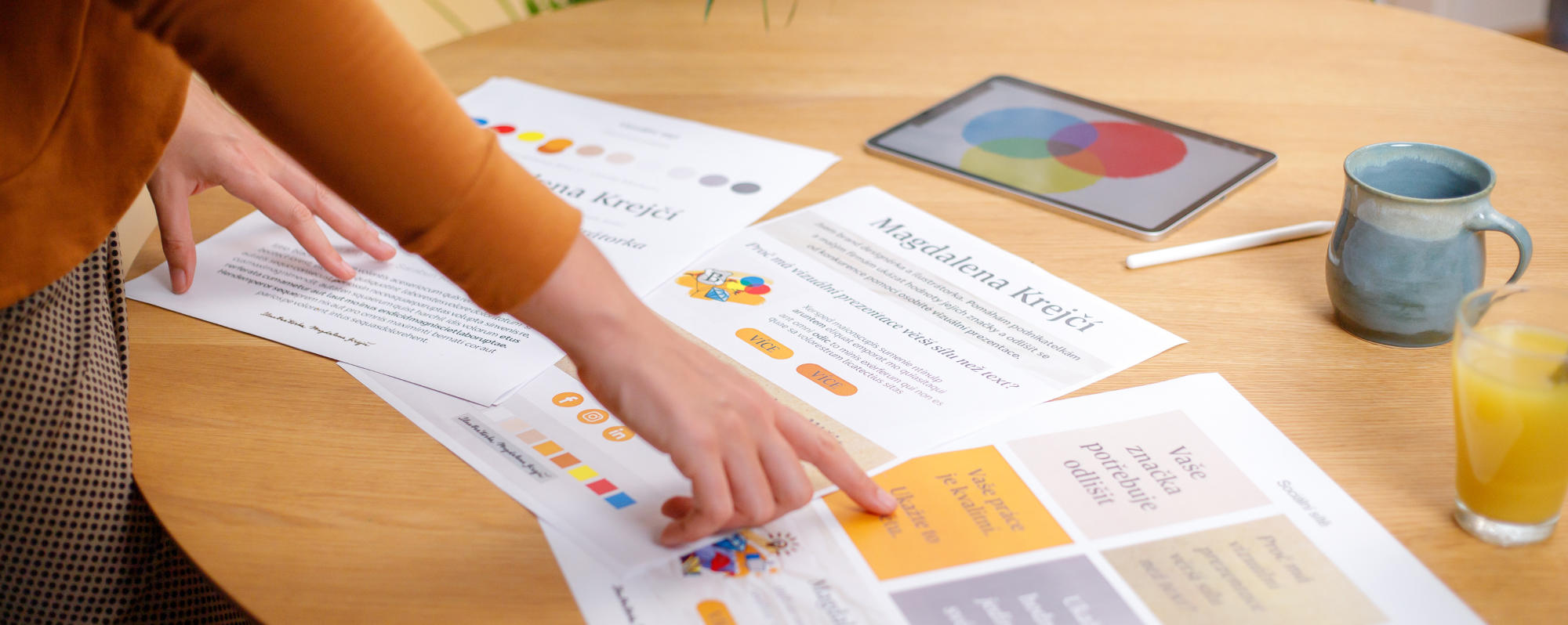Ráda pro vás vytvořím vizuální styl, který bude vycházet z hodnot vaší značky, dodá vaší prezentaci jiskru jedinečnosti a pomůže vám vyniknout v přeplněném online prostoru.